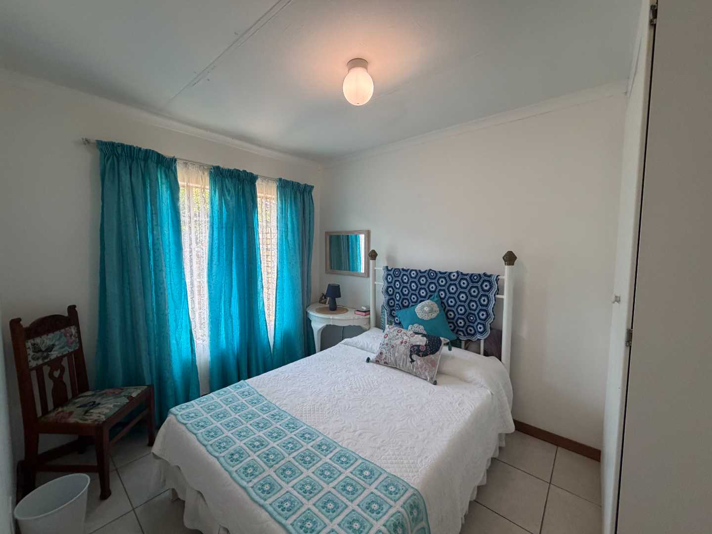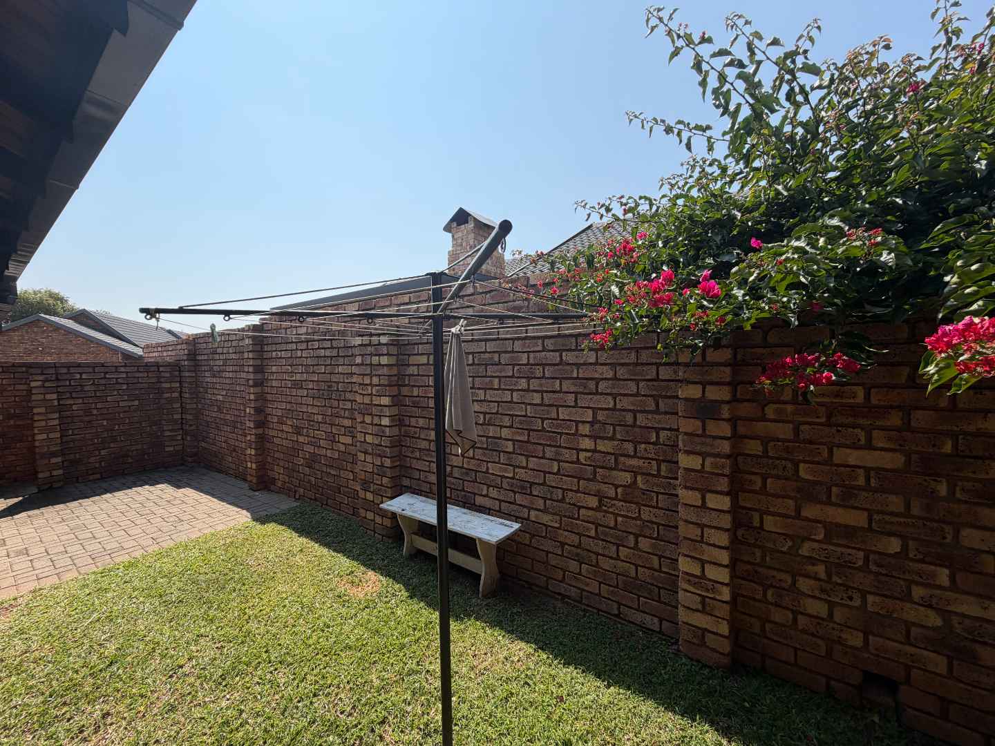 Step outside to discover the charming patio area, complete with a built-in braai, ideal for hosting gatherings or enjoying a quiet evenings. The patio overlooks a pretty garden, providing a serene backdrop and a perfect spot for relaxation.