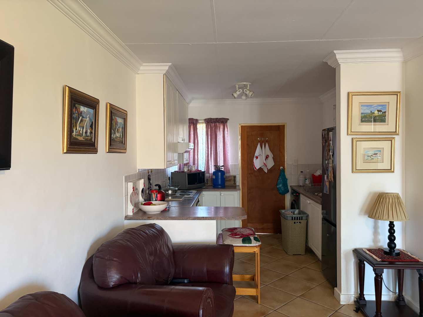 Upon entering, you are greeted by an inviting lounge area that flows into an open-plan kitchen. This layout is perfect for both everyday living and entertaining guests. The kitchen is well-equipped and ready to cater to all your culinary needs.