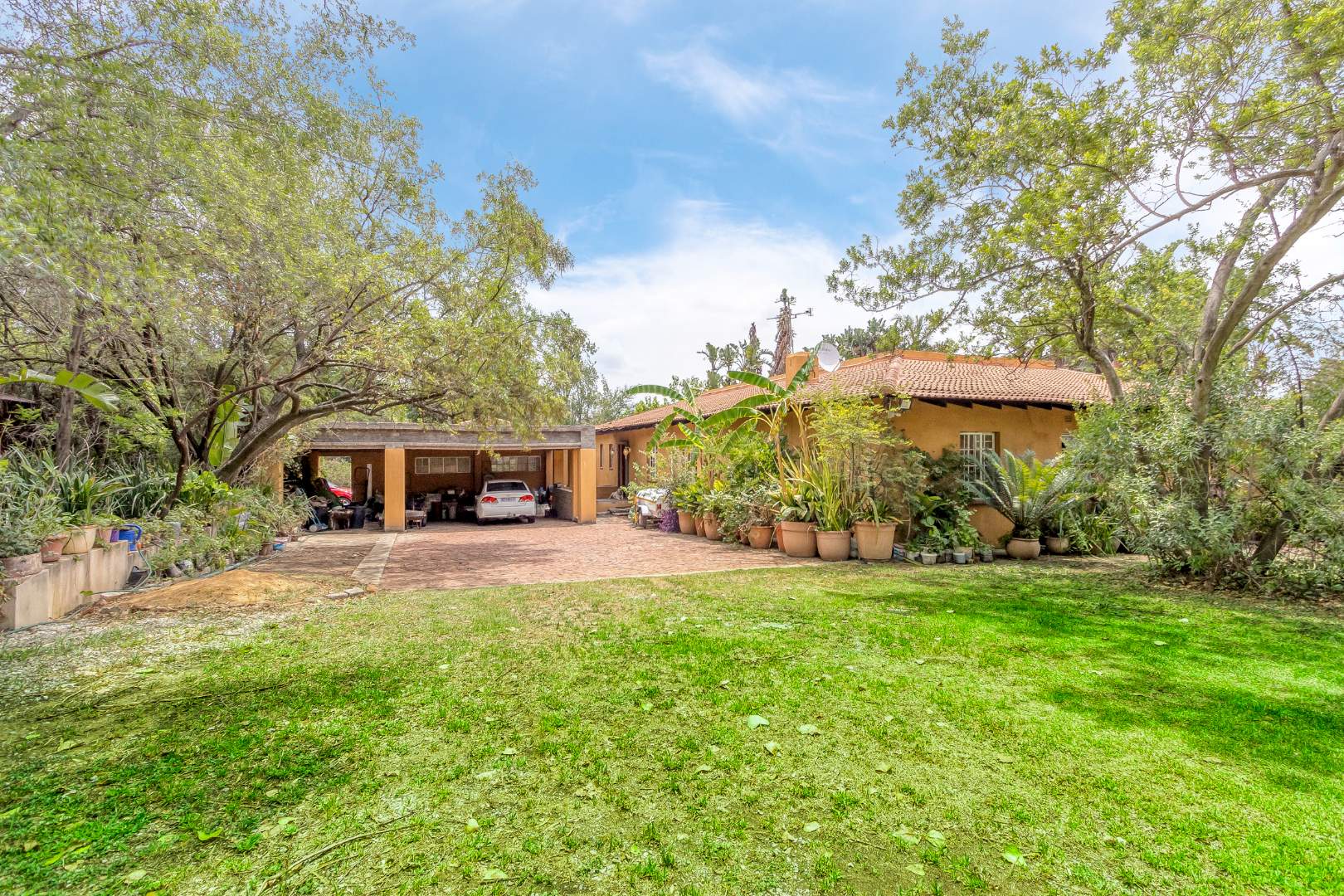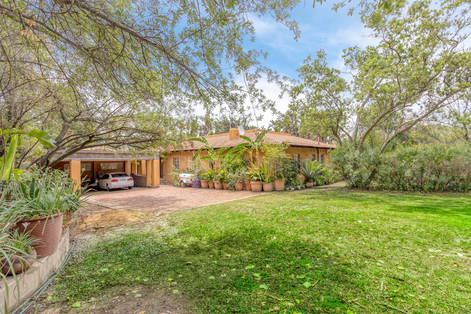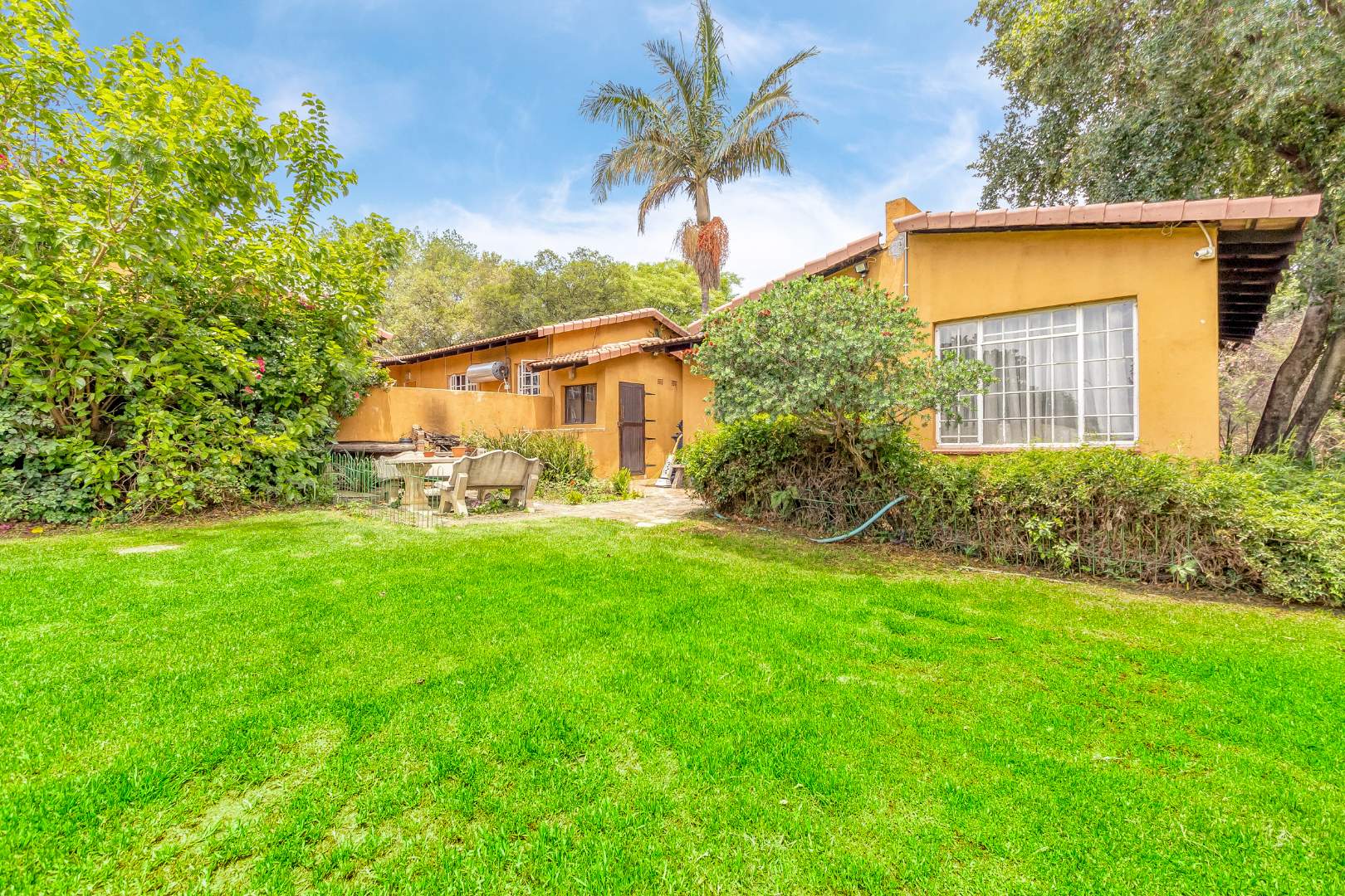 The heart of the home is its classic kitchen, ideal for both everyday meals and entertaining family and friends. The large living room is a welcoming space that seamlessly opens onto a patio, offering picturesque views of the pool and expansive garden beyond. This outdoor oasis is perfect for relaxing, hosting gatherings, or enjoying serene moments surrounded by nature.