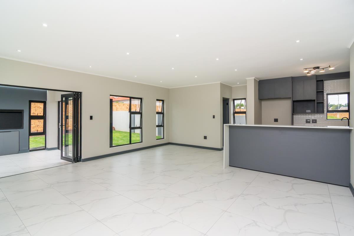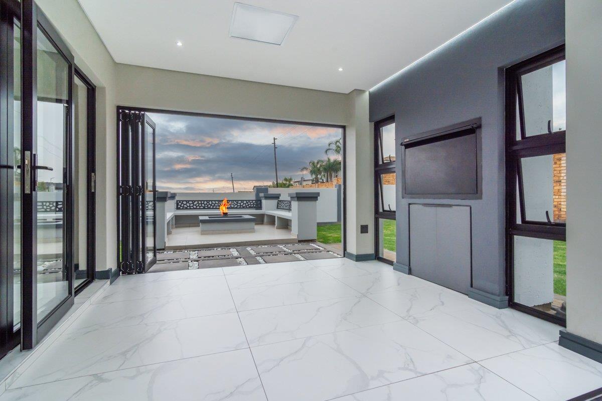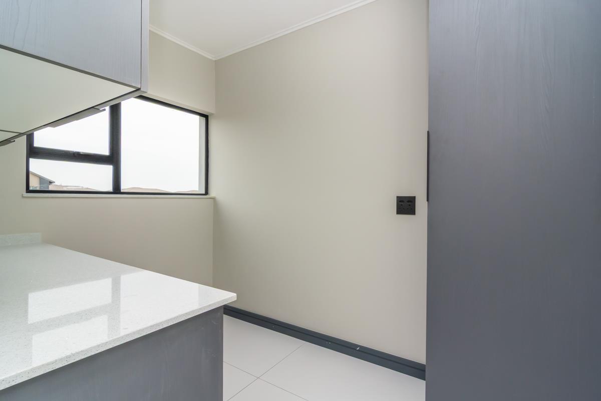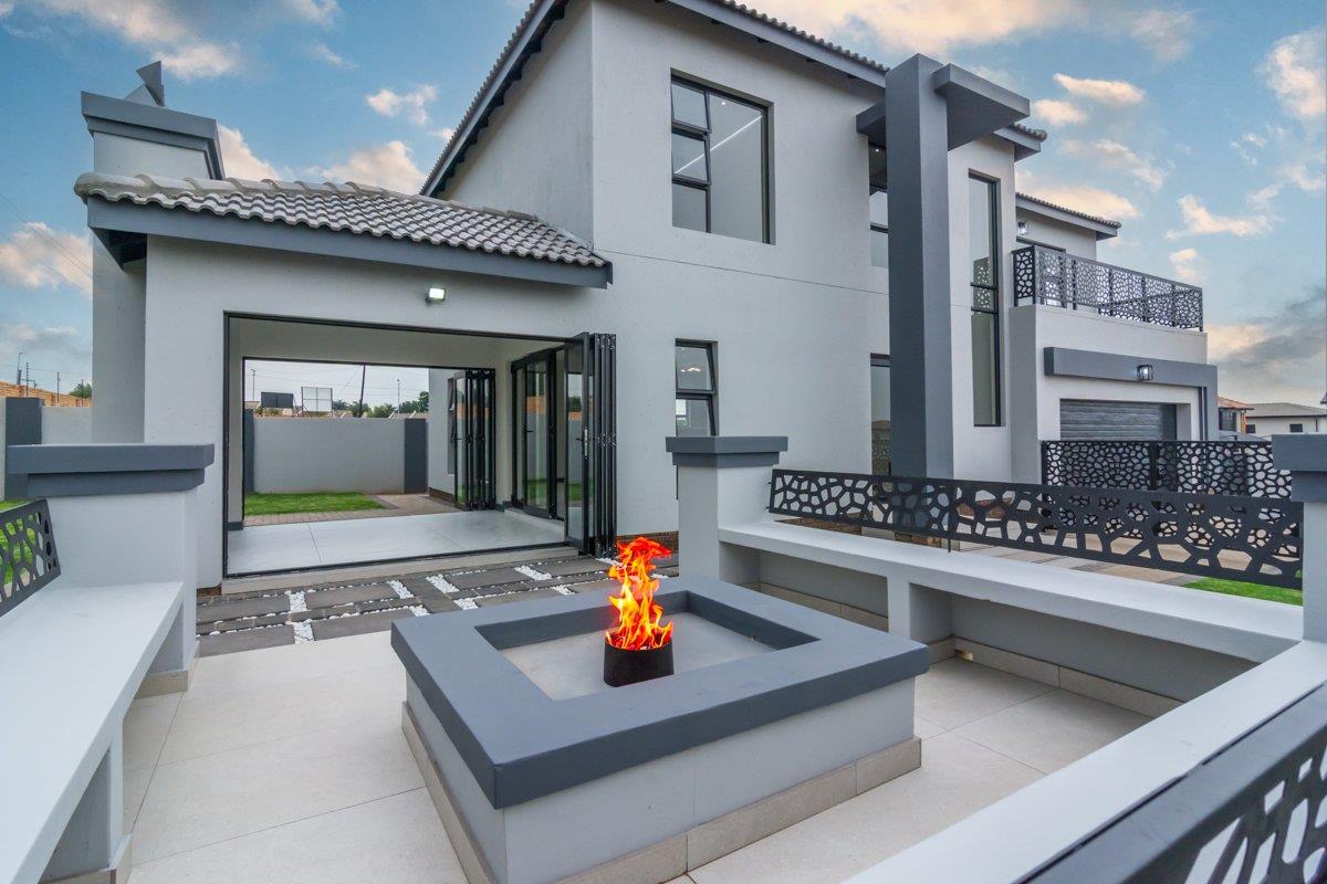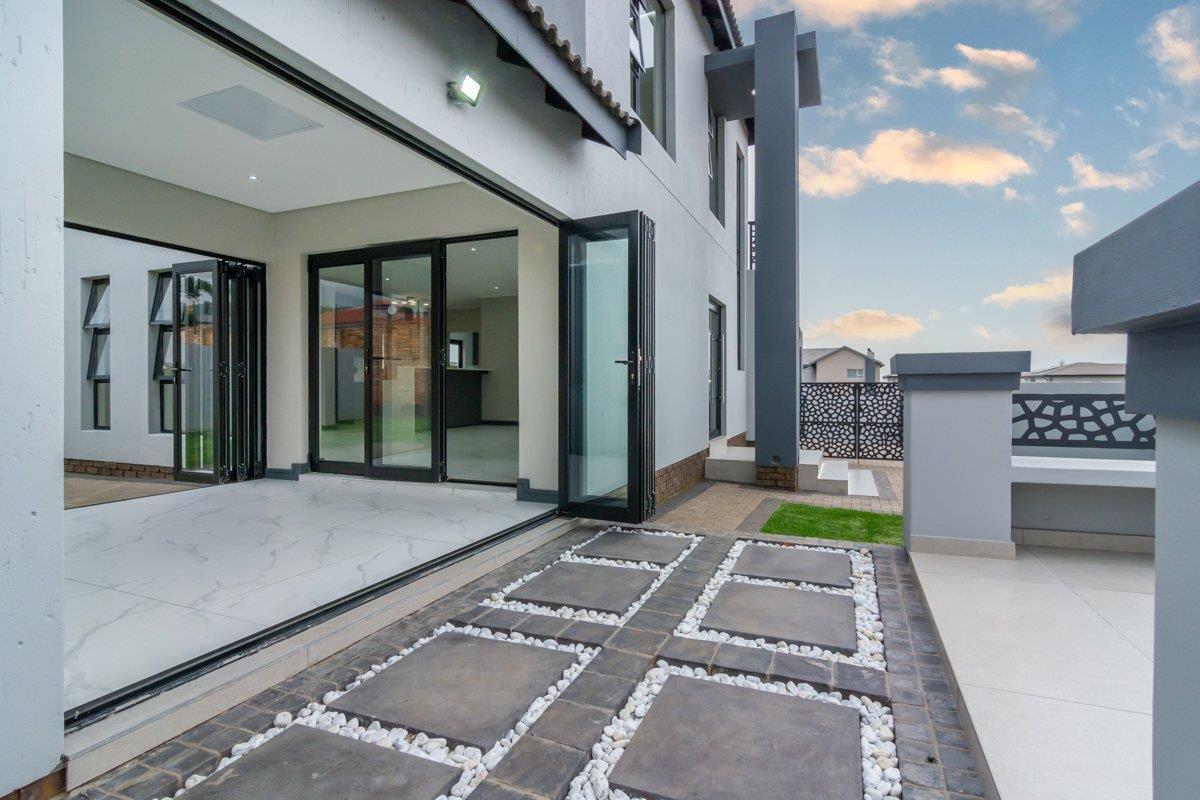The enclosed patio with built-in braai opens onto a private enclosed garden and boma area, ideal for entertaining guests or enjoying family evenings outdoors. Additional features include a double automated garage, a separate external laundry room and an additional external room that can be utilised as a utility, storage or multipurpose space. The home is fibre-ready, solar-prepped, and fitted with a smart electrical system and smart Wi-Fi lighting. No transfer duty is payable, and optional extras include solar backup power, a swimming pool and backup water storage. The property is conveniently located close to shopping centres, hospitals, schools, entertainment facilities and offers easy access to main highways.