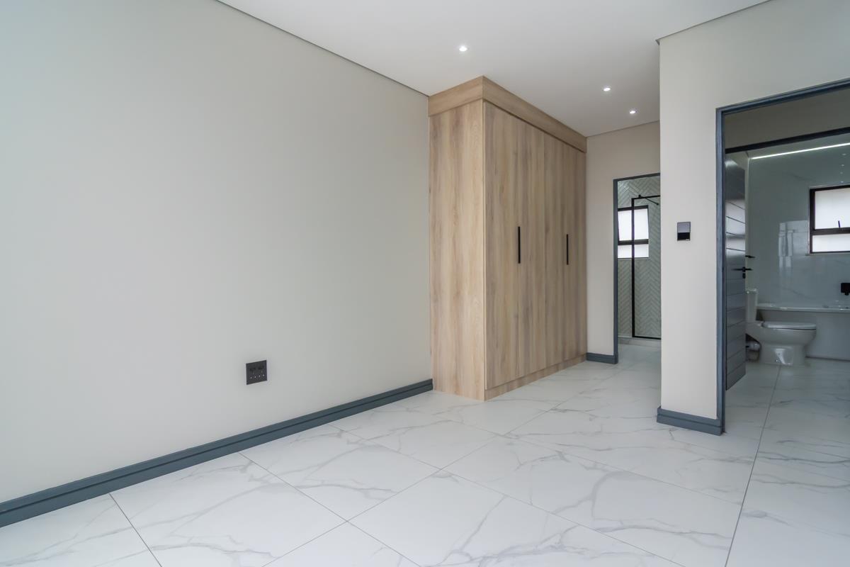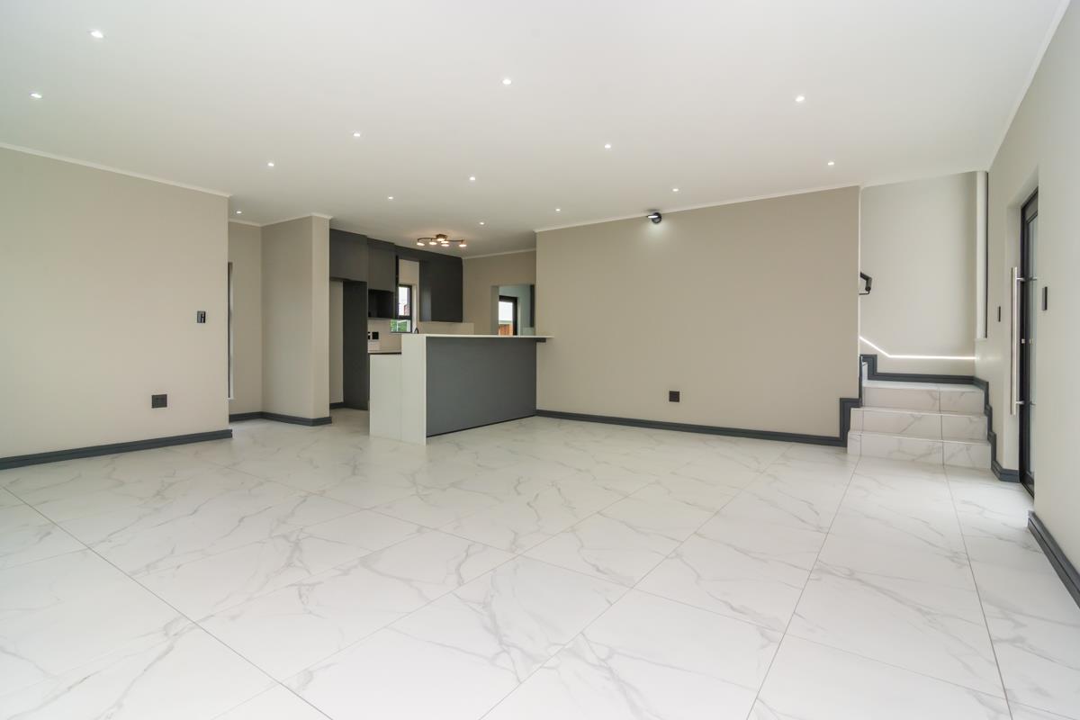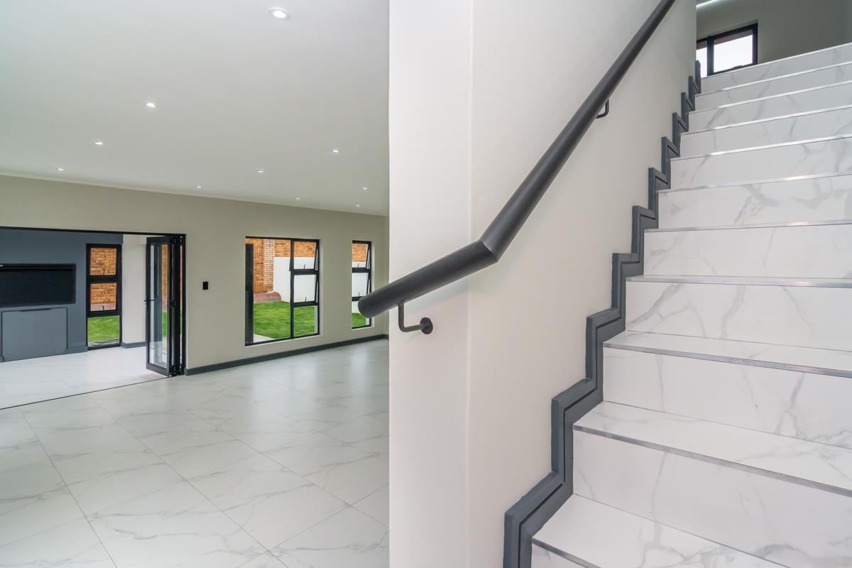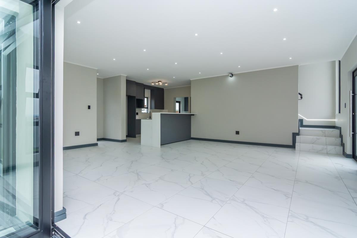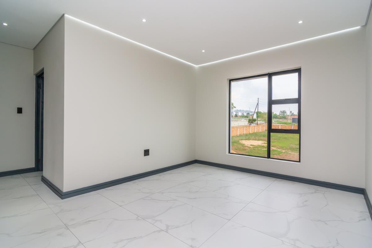 The enclosed patio with built-in braai opens onto a private enclosed garden and boma area, ideal for entertaining guests or enjoying family evenings outdoors. Additional features include a double automated garage, a separate external laundry room and an additional external room that can be utilised as a utility, storage or multipurpose space. The home is fibre-ready, solar-prepped, and fitted with a smart electrical system and smart Wi-Fi lighting. No transfer duty is payable, and optional extras include solar backup power, a swimming pool and backup water storage. The property is conveniently located close to shopping centres, hospitals, schools, entertainment facilities and offers easy access to main highways.
