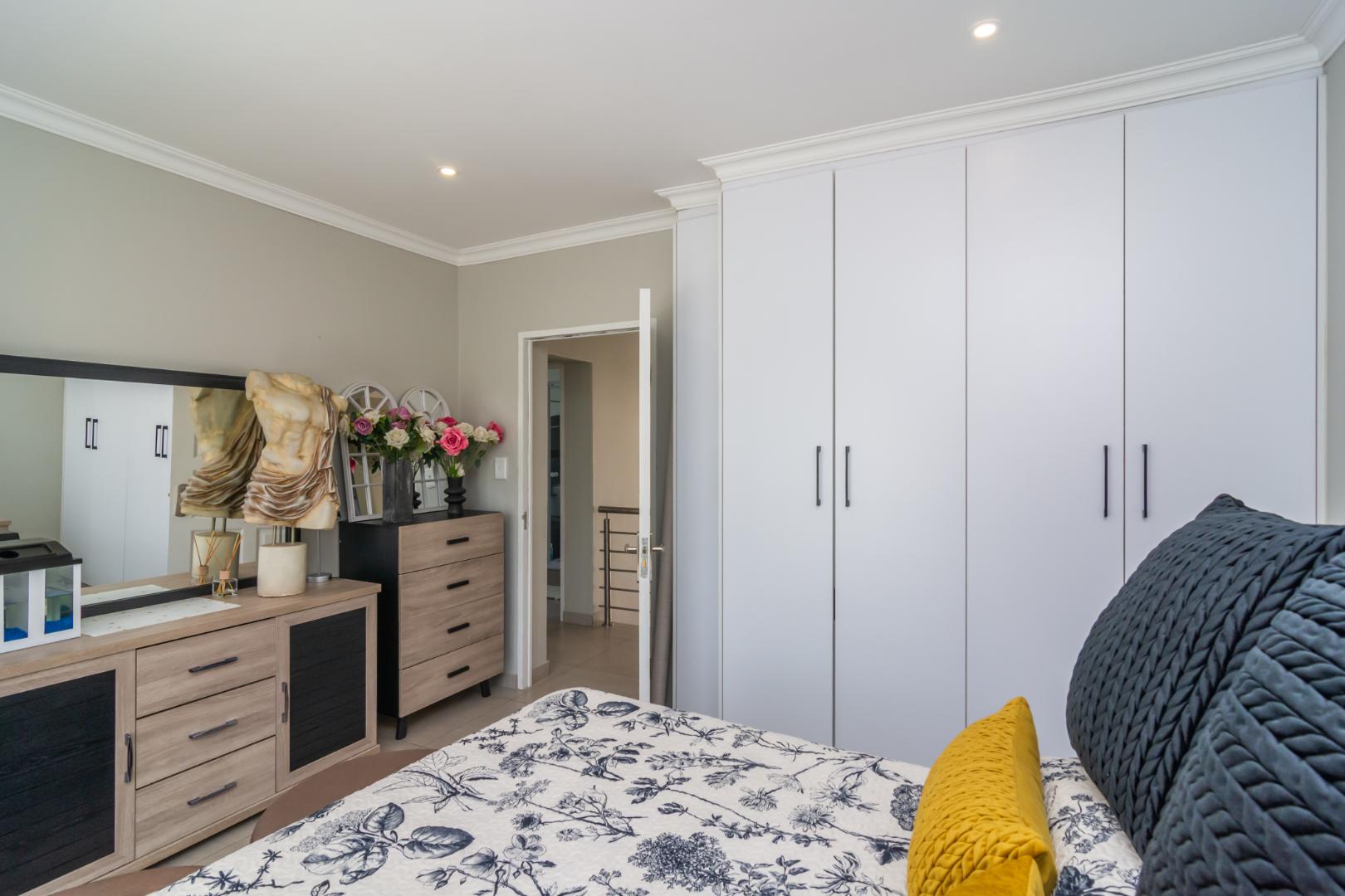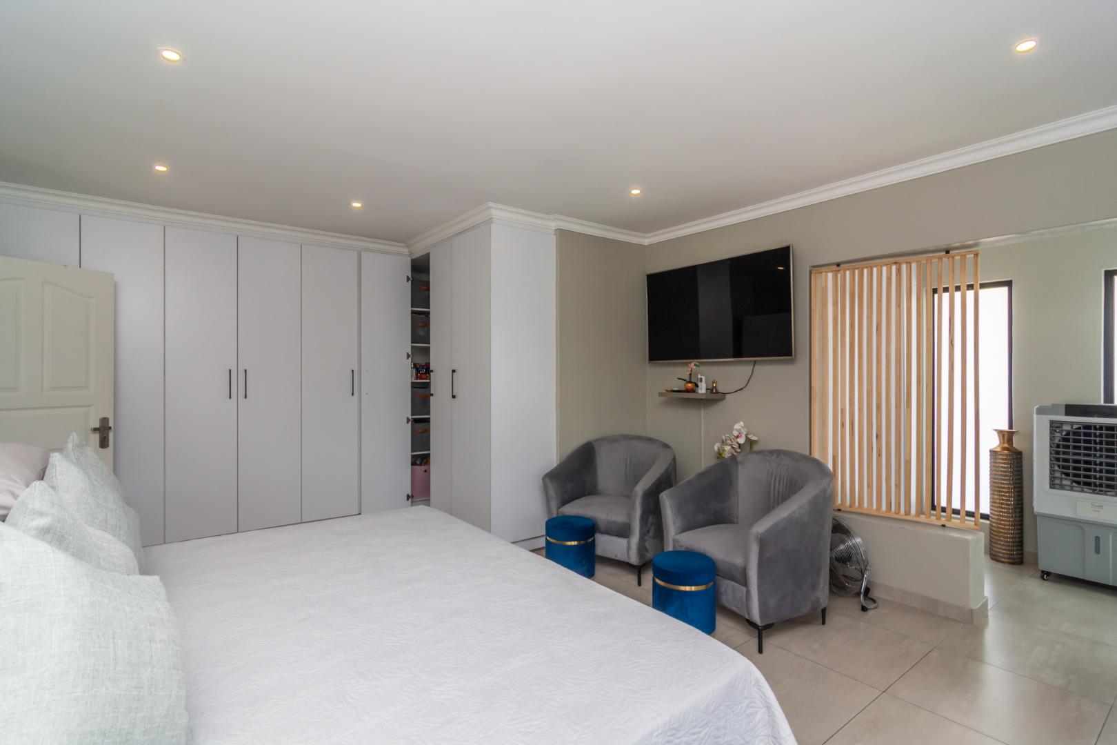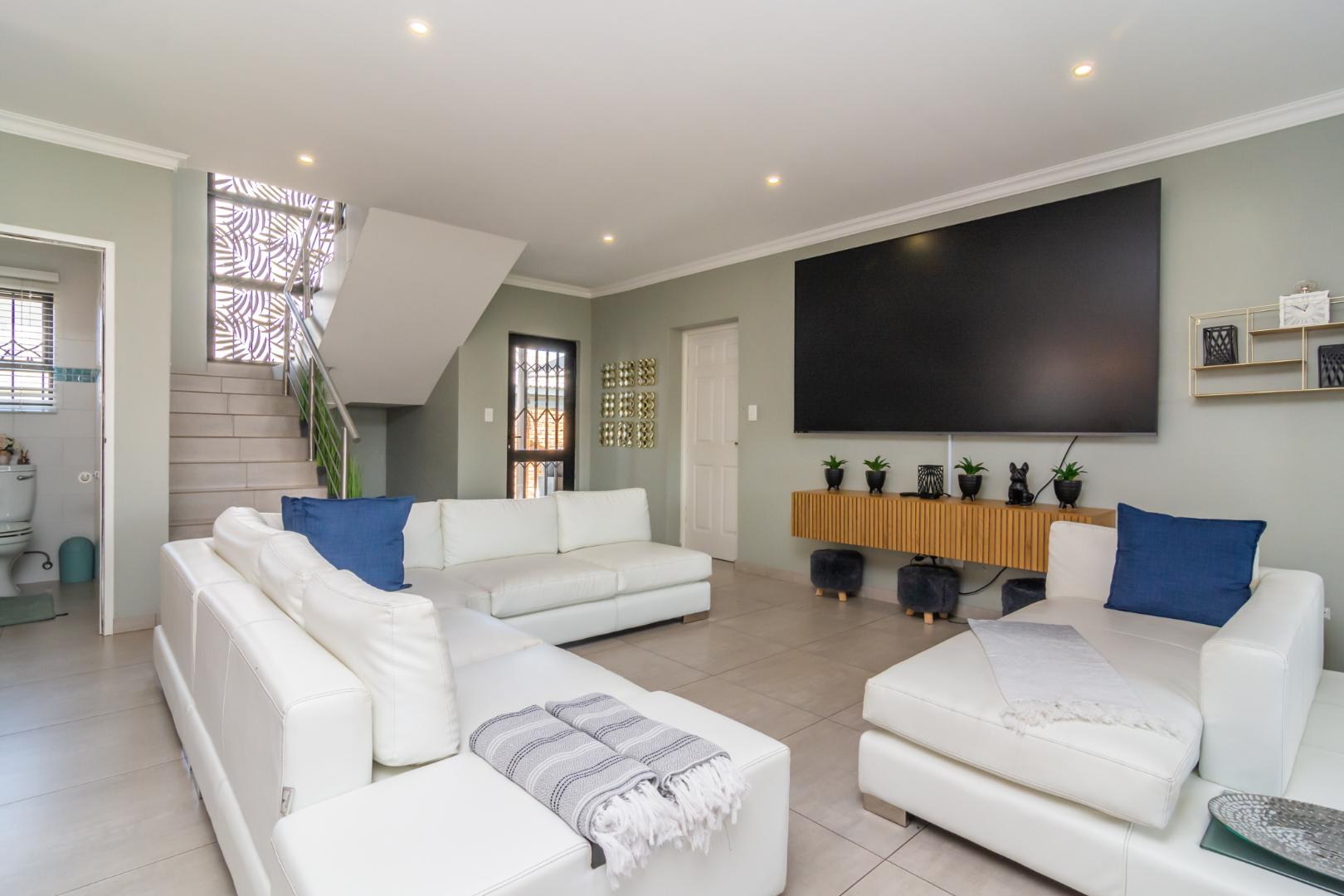 Designed for effortless living, the home welcomes you with four expansive living areas, each offering its own unique atmosphere. The ground floor features a comfortable TV lounge, a refined dining room, a bright and inviting sunroom, and a built-in braai entertainment room — perfect for hosting family gatherings and entertaining guests throughout the year.