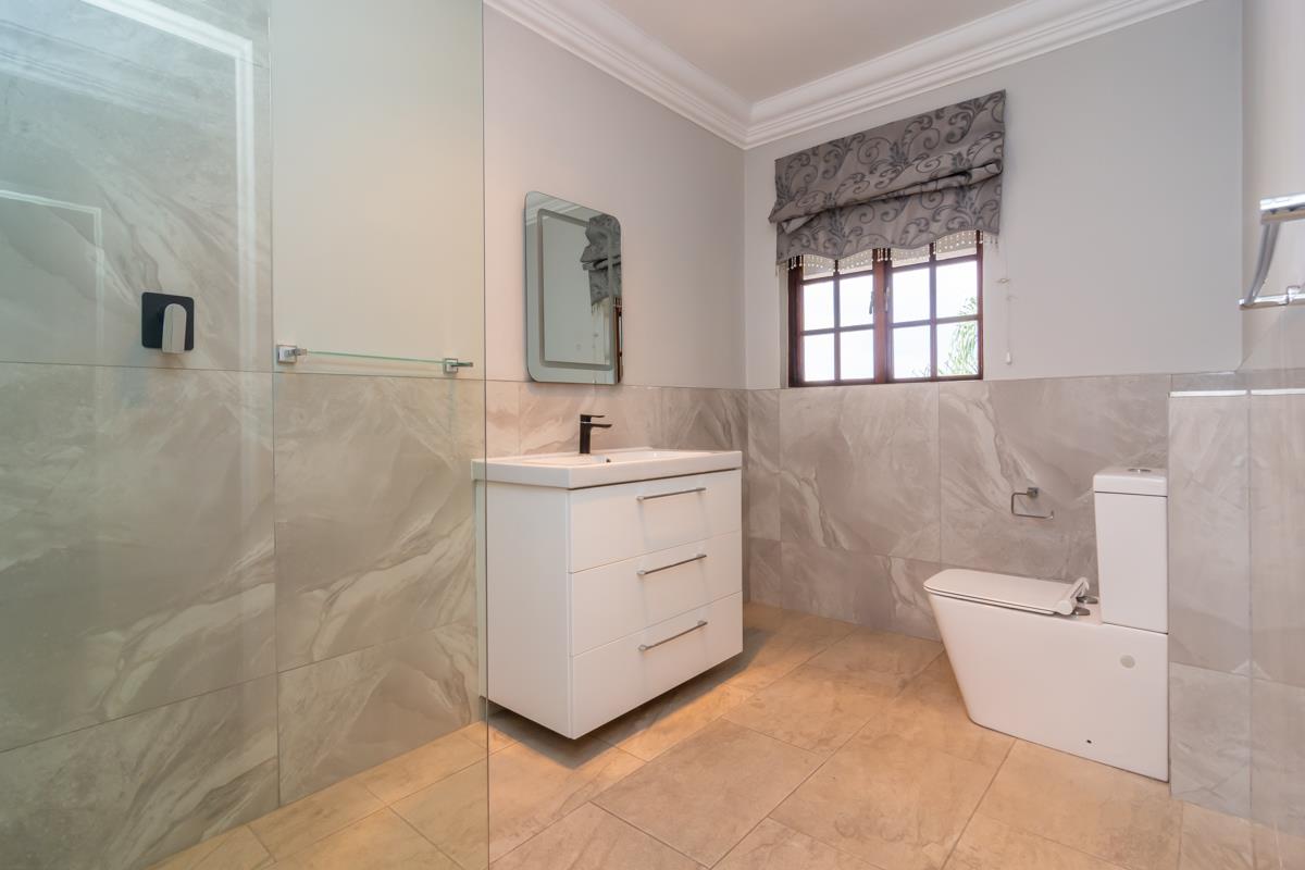 A separate, fully self-contained flatlet with its own entrance features a spacious en-suite bedroom, open-plan kitchen and living area, pyjama lounge, and guest bathroom—perfect for extended family or discerning guests. An additional private outside flatlet provides even more guest accommodation. The seven-car garage, along with ample open parking, caters to car enthusiasts, while the beautifully landscaped gardens with a full irrigation system create a tranquil oasis of natural beauty.