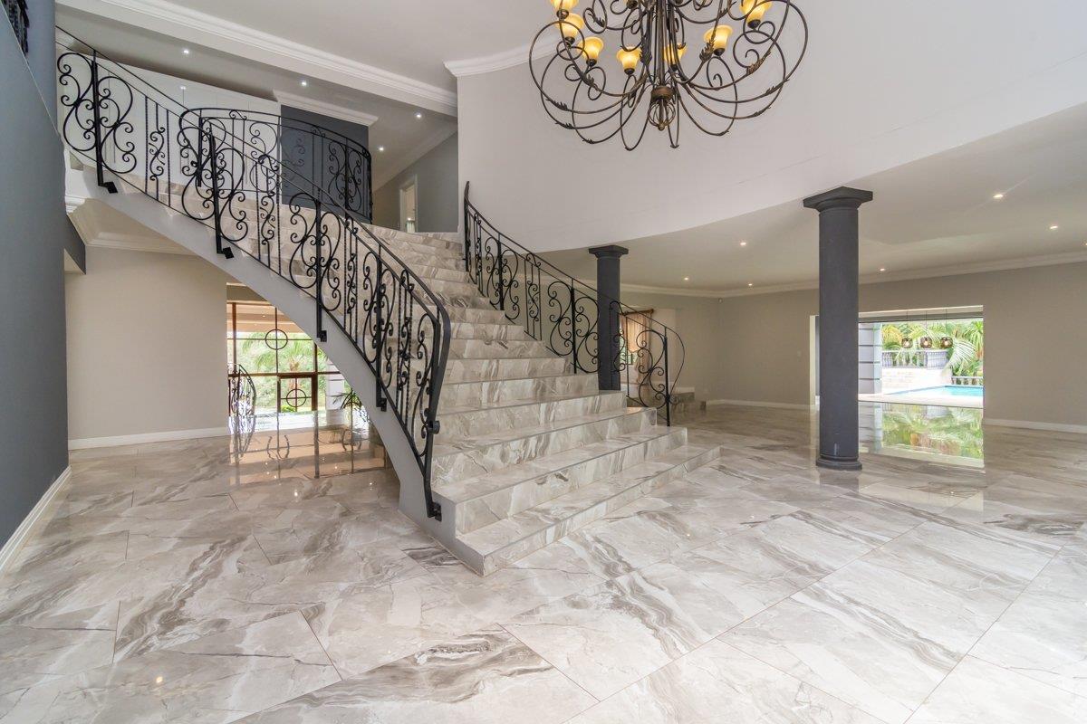 Step into a world of refined elegance, where every detail has been meticulously designed to offer the ultimate in luxury living. From the grand atrium entrance with a striking stairway and serene water feature to the marble flooring throughout, this home exudes timeless sophistication. Expansive living and entertainment areas include five beautifully designed lounges, an enclosed patio for seamless indoor-outdoor living, a private wine cellar, and a resort-style pool with a built-in braai—perfect for hosting in style.
