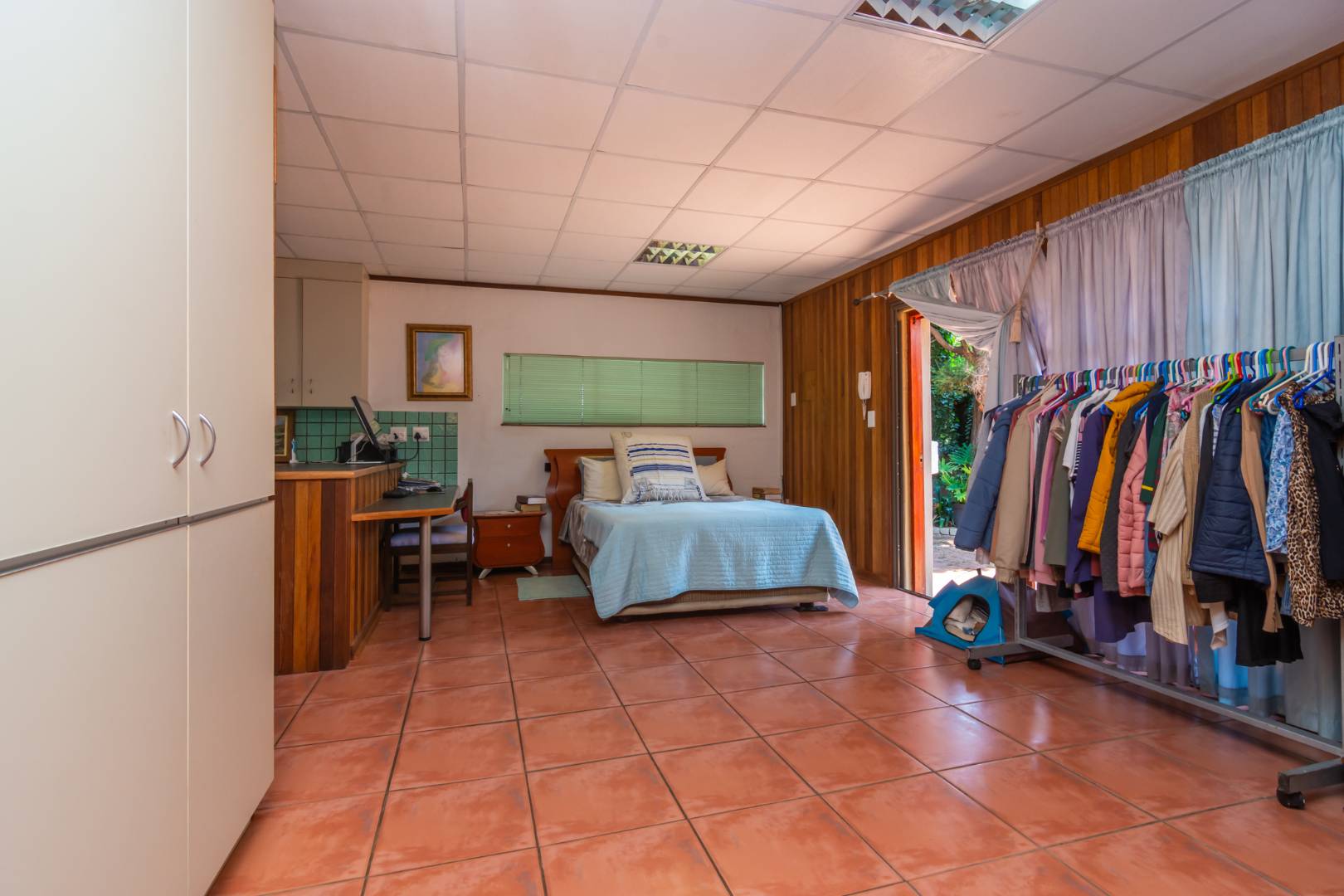 The property also features a spacious flatlet with its own kitchen, gas geyser, and air conditioning — ideal for guests or extended family ir can be used as a home office with a separate entrance and garden.