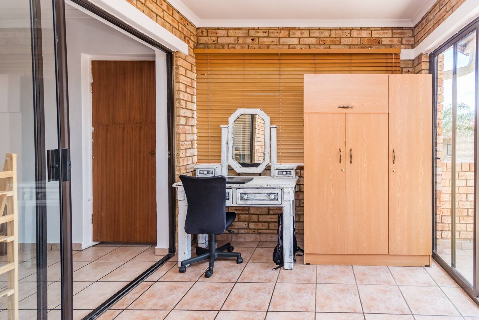 Downstairs you’ll find three generously sized bedrooms, one of which has its own ensuite bathroom. The fourth bedroom is privately situated upstairs, offering plenty of cupboards and its own ensuite bathroom with a shower. Part of the upstairs balcony has been enclosed to create a versatile room—perfect as a study, pyjama lounge, or hobby room—with a sliding door opening onto the balcony where you can enjoy stunning views of the surrounding area.