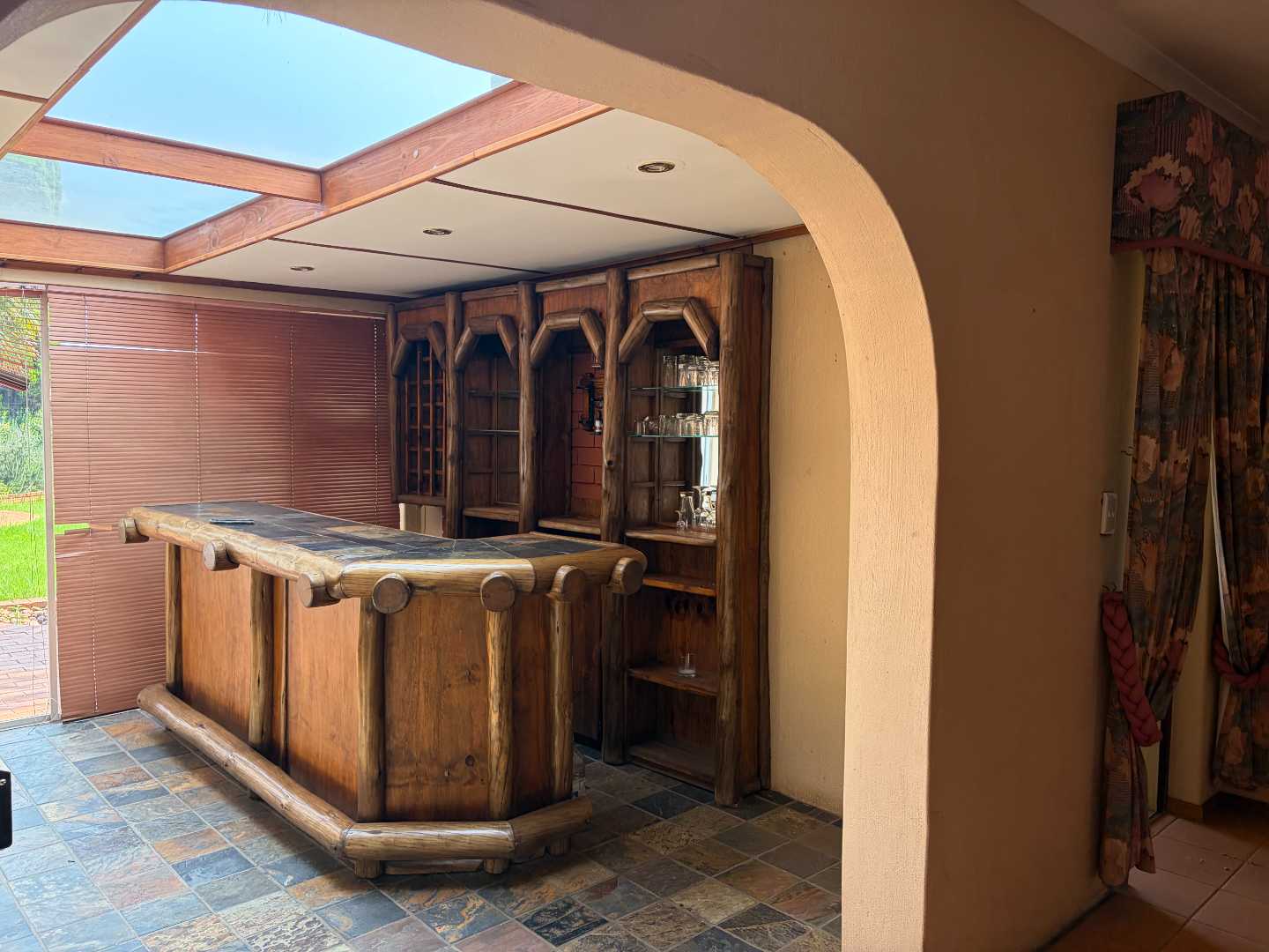 Entertaining is effortless with the well-equipped bar area, complete with an indoor gas braai, ensuring memorable gatherings with family and friends. The dining room provides an elegant setting for formal meals, while the patio offers an ideal spot for alfresco dining overlooking the sparkling pool.